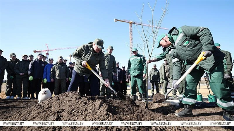 Фотофакт. Лукашенко, Коля и шпиц на субботнике